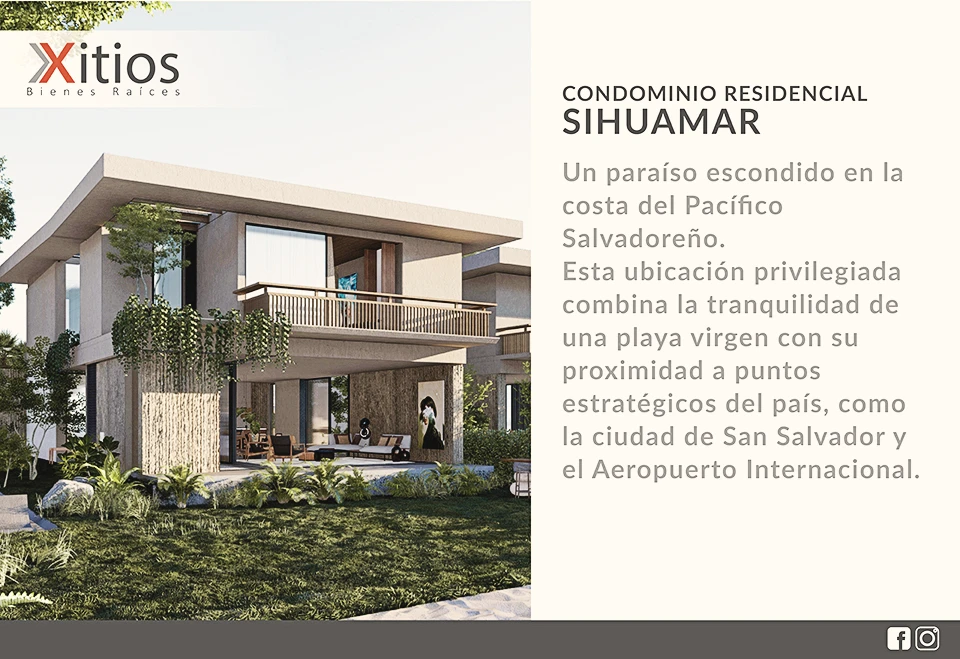 Sihuamar es un proyecto habitacional y vacacional en el que se construiran 10 casas de dos niveles con acabados de lujo y arquitectura moderna, en las que podrás disfrutar de la tranquilidad de la hermosa Playa Sihuapilapa, ideal para descansar y relajarse, rodeado de palmeras, áreas verdes y hermosos atardeceres.